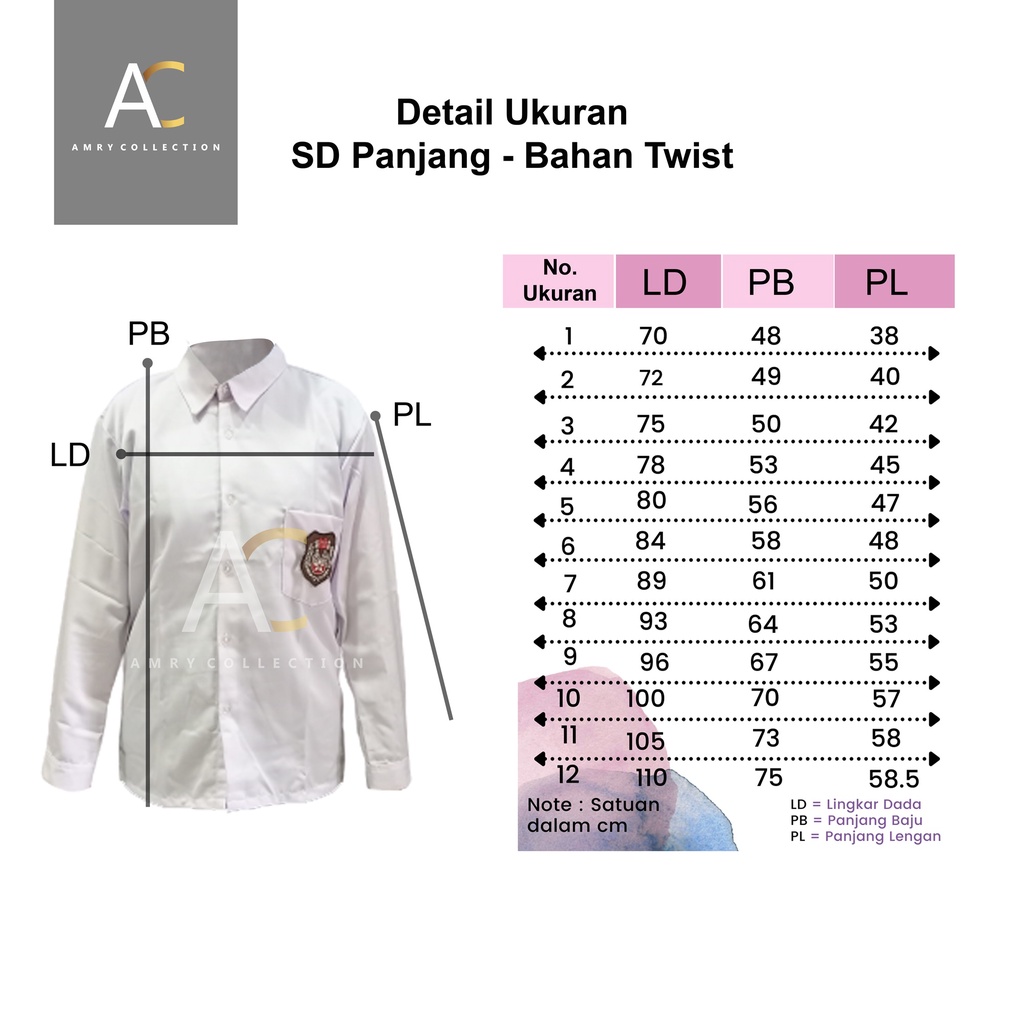 Harga Baju Seragam SD Panjang Putih Kain TWIST / Licin By Amrycollection