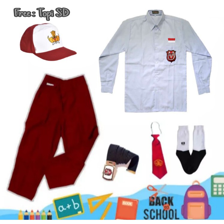 Harga Seragam sekolah sd merah putih setelan super lengkap anak laki panjang FREE topi