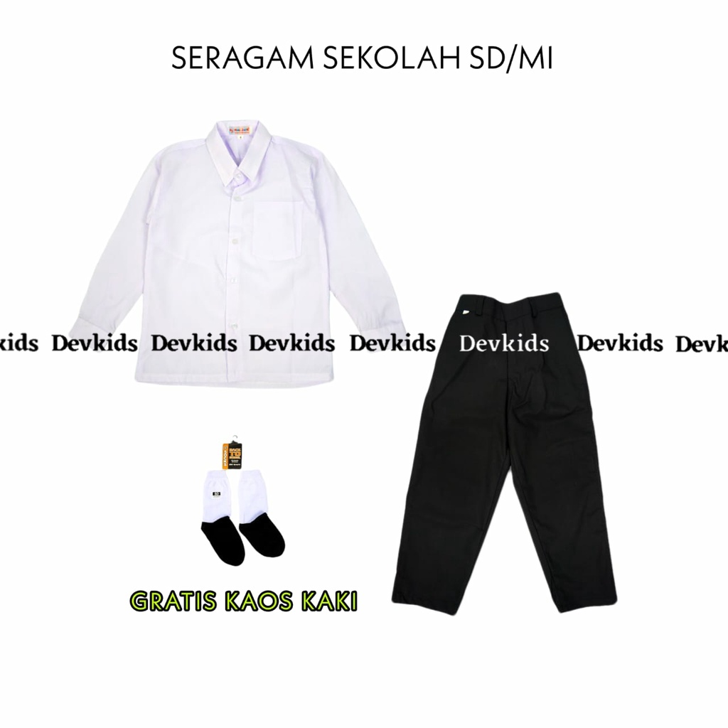 Harga Seragam Sekolah SD MI Setelan Lengkap Putih Hitam Laki Laki Baju Putih Polos Panjang Celana Hitam Panjang Kelas 1 – 6 SD