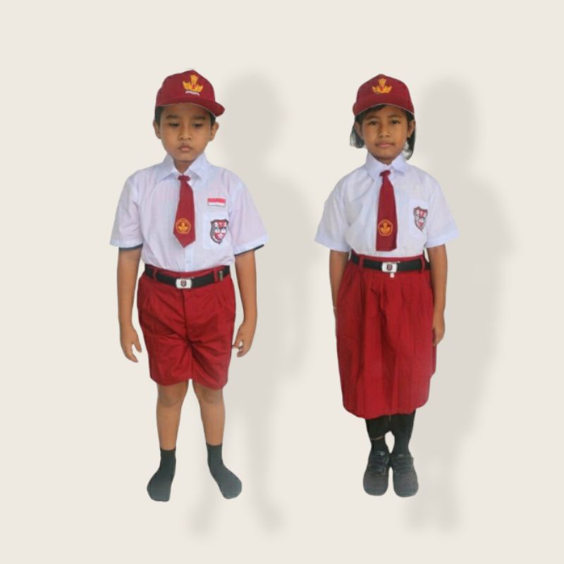 Harga Seragam Sekolah SD Setelan Lengkap Baju Putih Pendek Celana Atau Rok Rempel Merah Pendek Sekolah SD Laki Laki Perempuan Kain Katun Teteron Dan Master Merk Agung