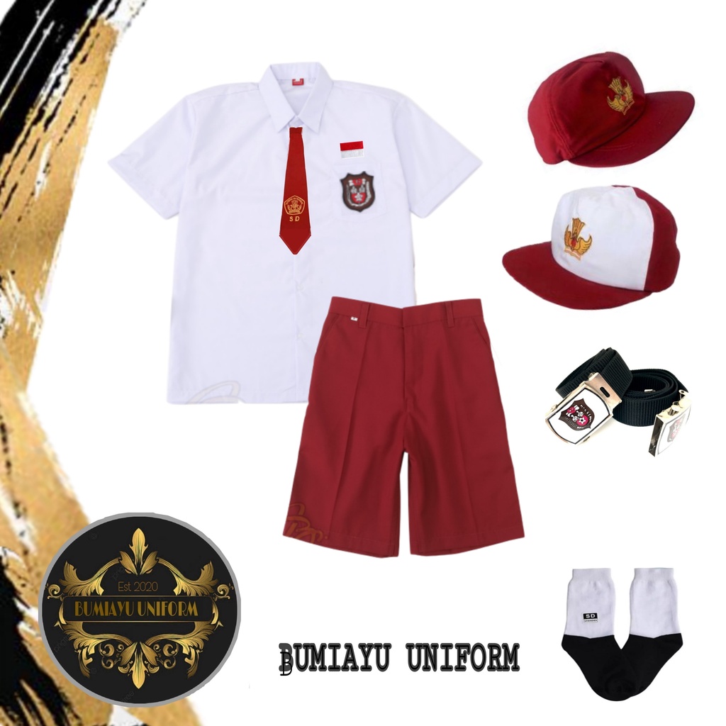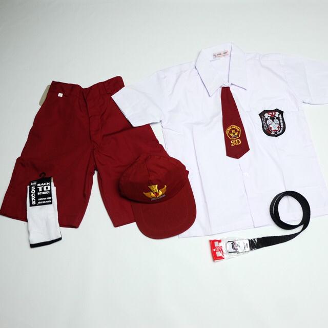 Harga Setelan Seragam Sekolah SD Merah Putih Pendek Anak Laki Laki Lengkap Kelas 1-6 SD Bonus Topi Sekolah SD