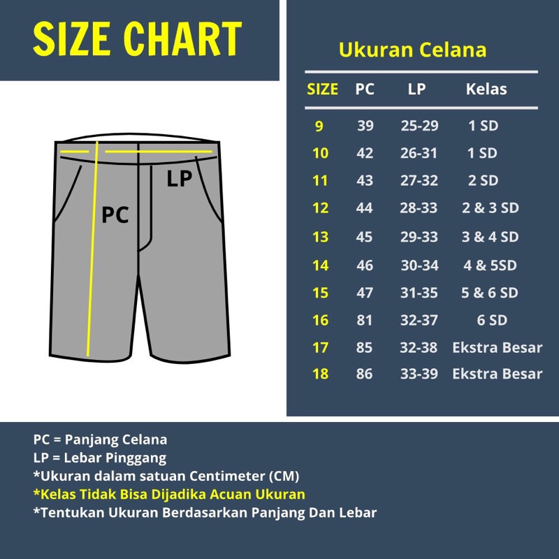 Produk ini memiliki 6 Variasi Ukuran yaitu : KELAS 1,KELAS 2,KELAS 3,KELAS 4,KELAS 5,KELAS 6,