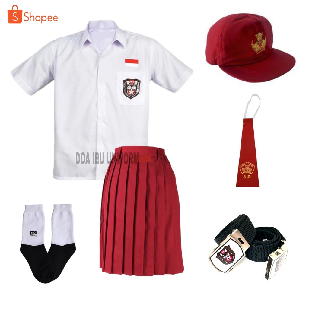Harga Baju Anak Perempuan Setelan Seragam Sekolah SD Merah Putih Pendek Kelas 1-6 SD Lengkap Bonus Topi Merah Polos SD