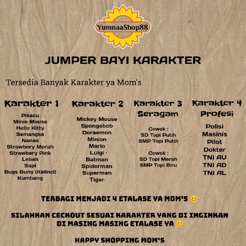 Alasan kenapa harus beli (KARAKTER 3) Jumper bayi Seragam SD SMP sekarang