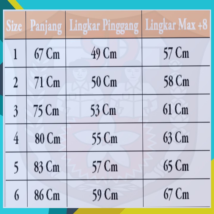 Produk ini memiliki 14 Variasi Size yaitu : 1,2,3,4,5,6,S,M,L,XL,L3,L4,L5,L6,