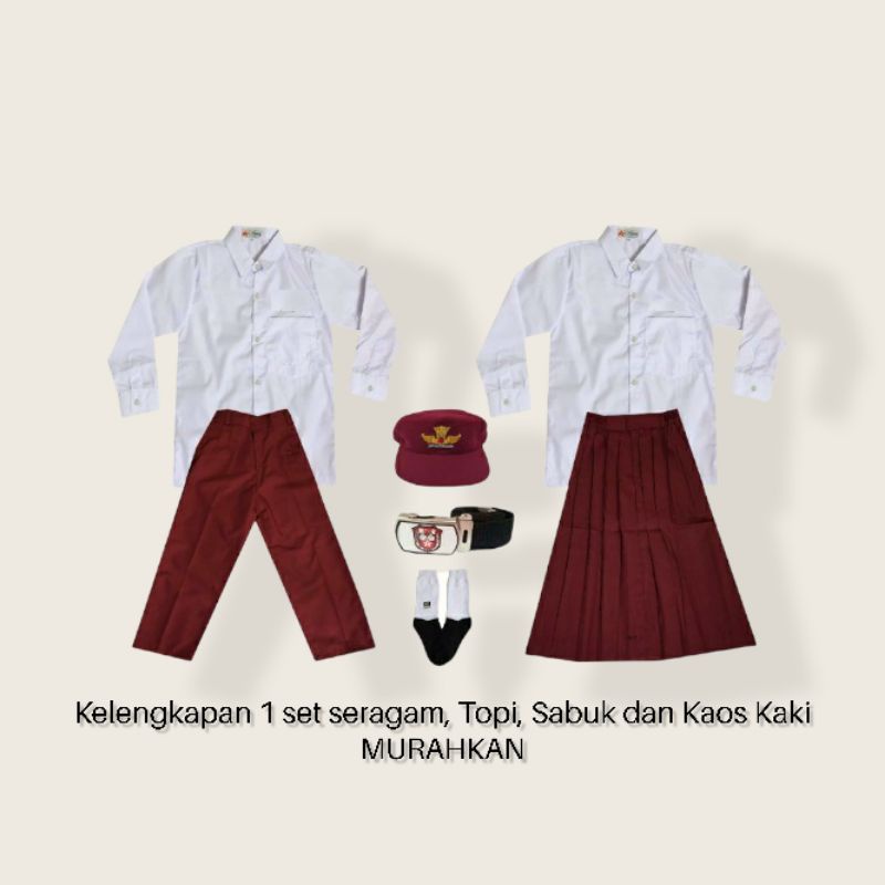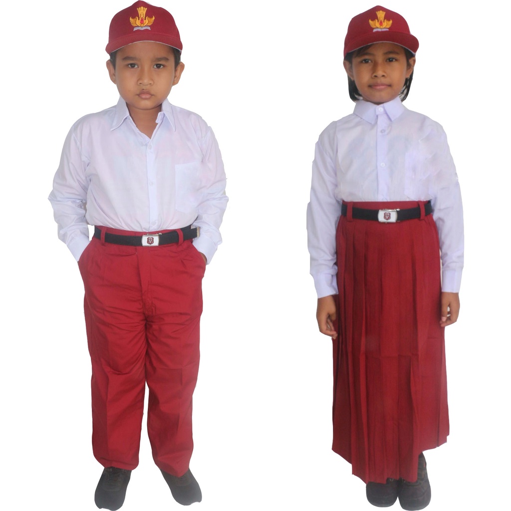 Harga Seragam Sekolah SD Setelan Baju Putih Polos Panjang Celana Atau Rok Merah Panjang Sekolah SD Laki Laki Perempuan Kain Katun Teteron Dan Nagatex Tebal Merk Agung