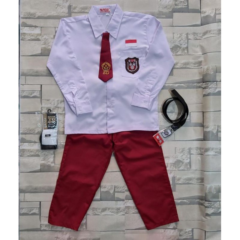 Setelan Super Lengkap Seragam Sekolah SD Laki BAJU PANJANG CELANA PANJANG