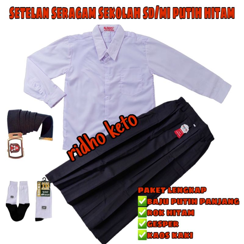 Kelebihan - Kelebihan membeli Setelan Seragam Sekolah SD / MI Putih Hitam Perempuan Kelas 1-6 Lengan Panjang di Toko ini
