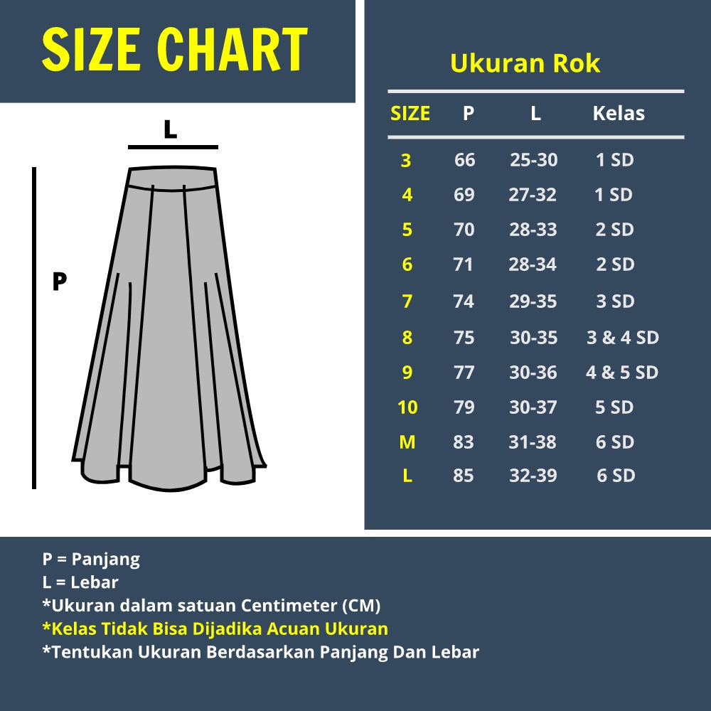 Produk ini memiliki 6 Variasi Ukuran yaitu : Kelas 1,Kelas 2,Kelas 3,Kelas 4,Kelas 5,Kelas 6,