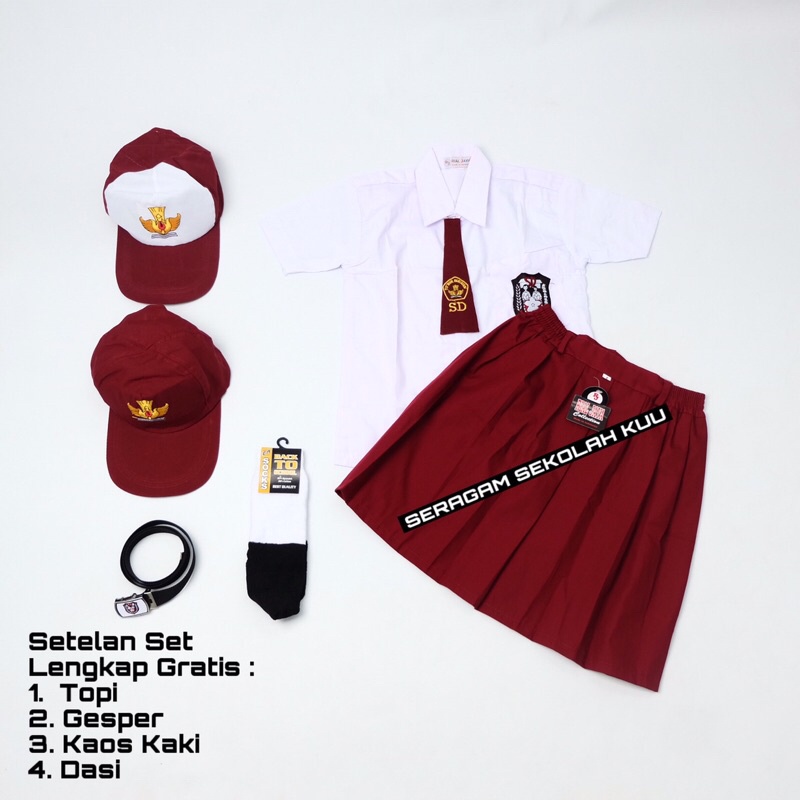 Harga Setelan Super Lengkap Seragam Sekolah SD BAJU PENDEK ROK PENDEK Perempuan Cewek