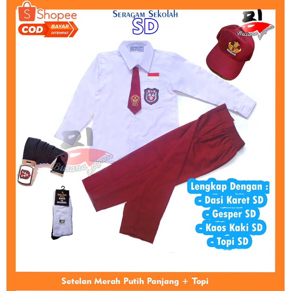 Seragam sekolah sd merah putih setelan super lengkap anak laki panjang FREE topi